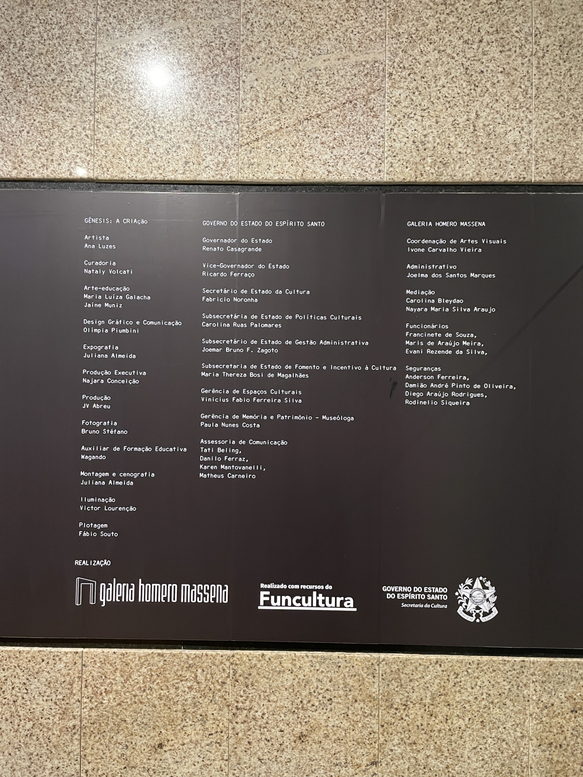 “Gênesis é minha primeira exposição individual, mas me orgulho em saber que foi construída de forma coletiva com as pessoas envolvidas no projeto. É o início de uma trajetória que busca trazer as memórias das favelas capixabas para o olhar de outros públicos. Exibir essas experiências na Galeria Homero Massena, um espaço de referência para pautas políticas contemporâneas, reforça a presença da periferia no Centro Histórico de Vitória”, diz Ana Luzes